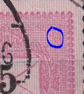 1889. 5kr /E/ lemezhiba – pálcika a jobb felső háromszögben