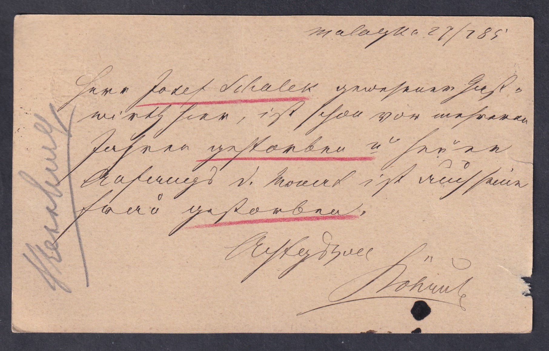1885. MALACZKA, Pozsonyba feladot levelezőlap