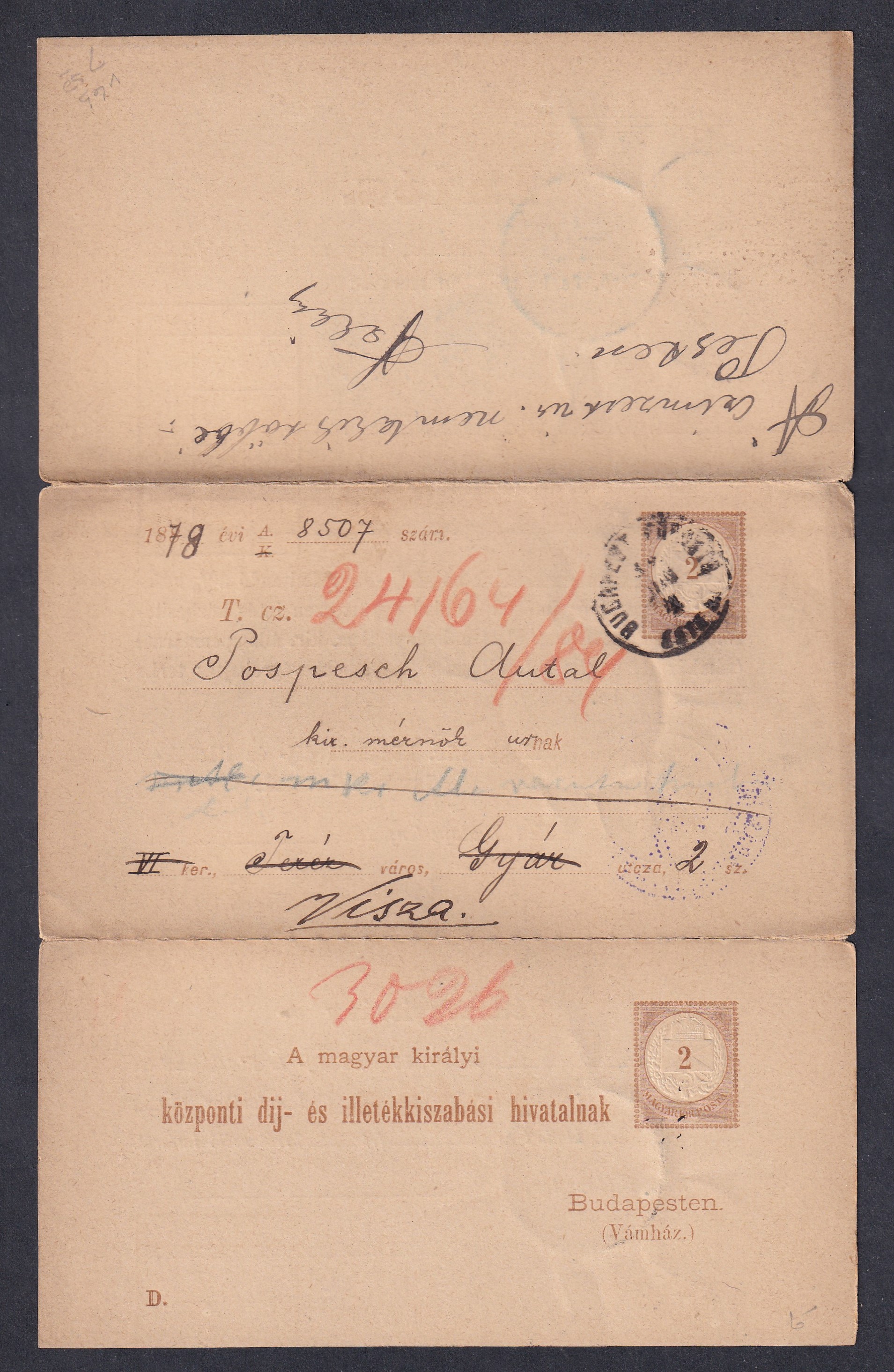 1878. Adóintés, teljes darab – mindhárom lap egyben, kezelésekkel; így ritka!