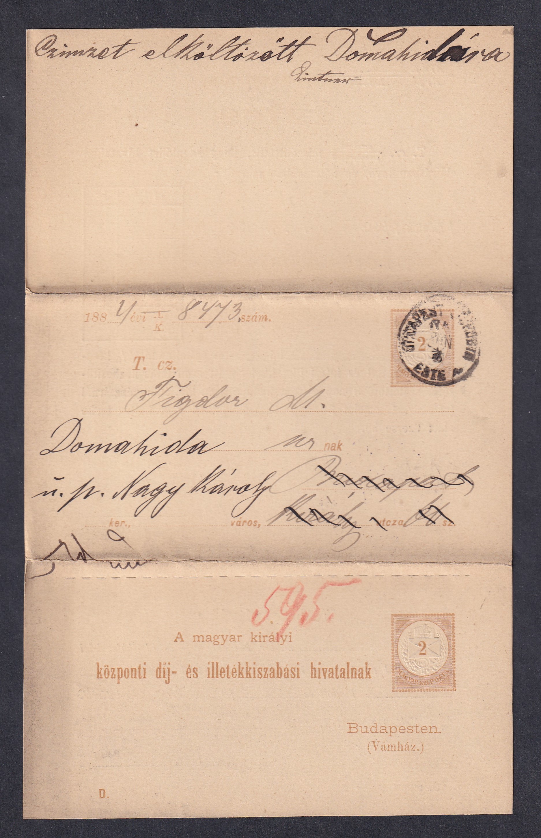 1884. Adóintés, teljes darab – mindhárom lap egyben, kezelésekkel; így ritka!
