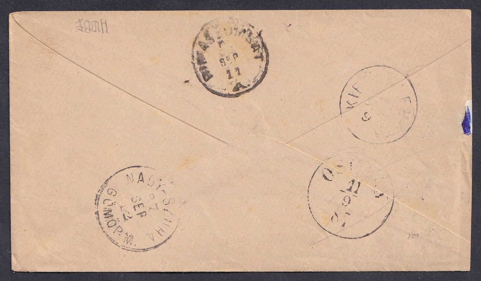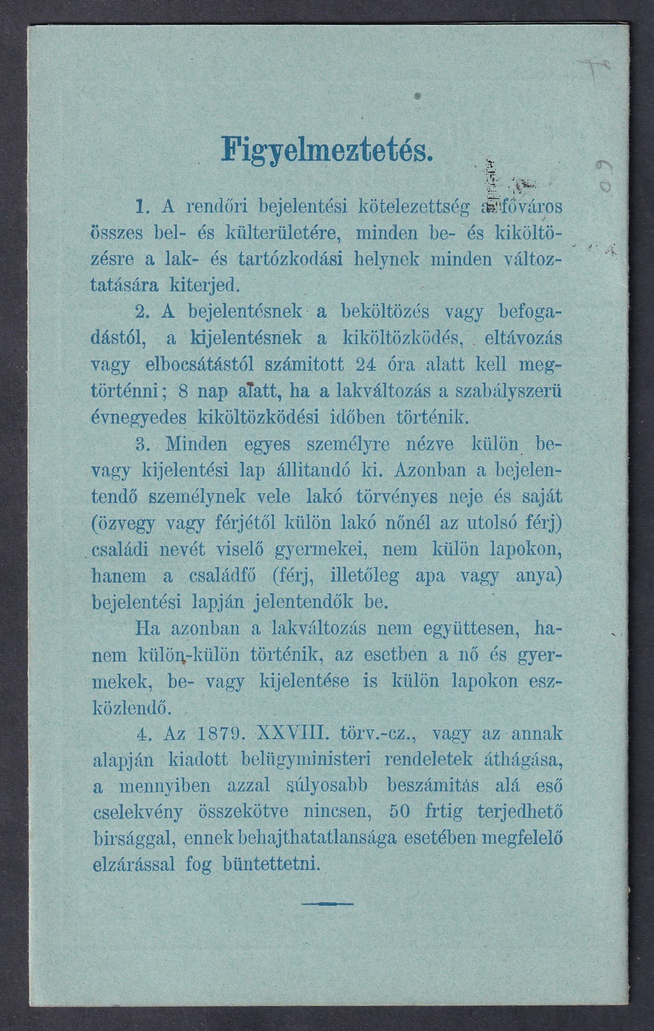 1900. felülnyomással átértékelt rendörségi levelezőlap – kék nyomat, kékeszöld papíron