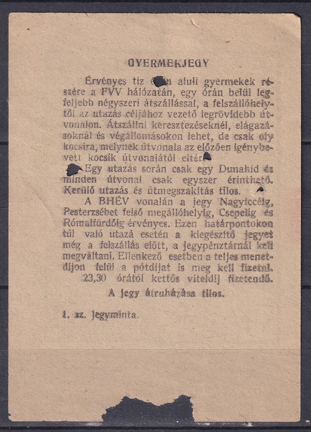 BHÉV, használatlan teljesárú menetjegy 1-3 Km