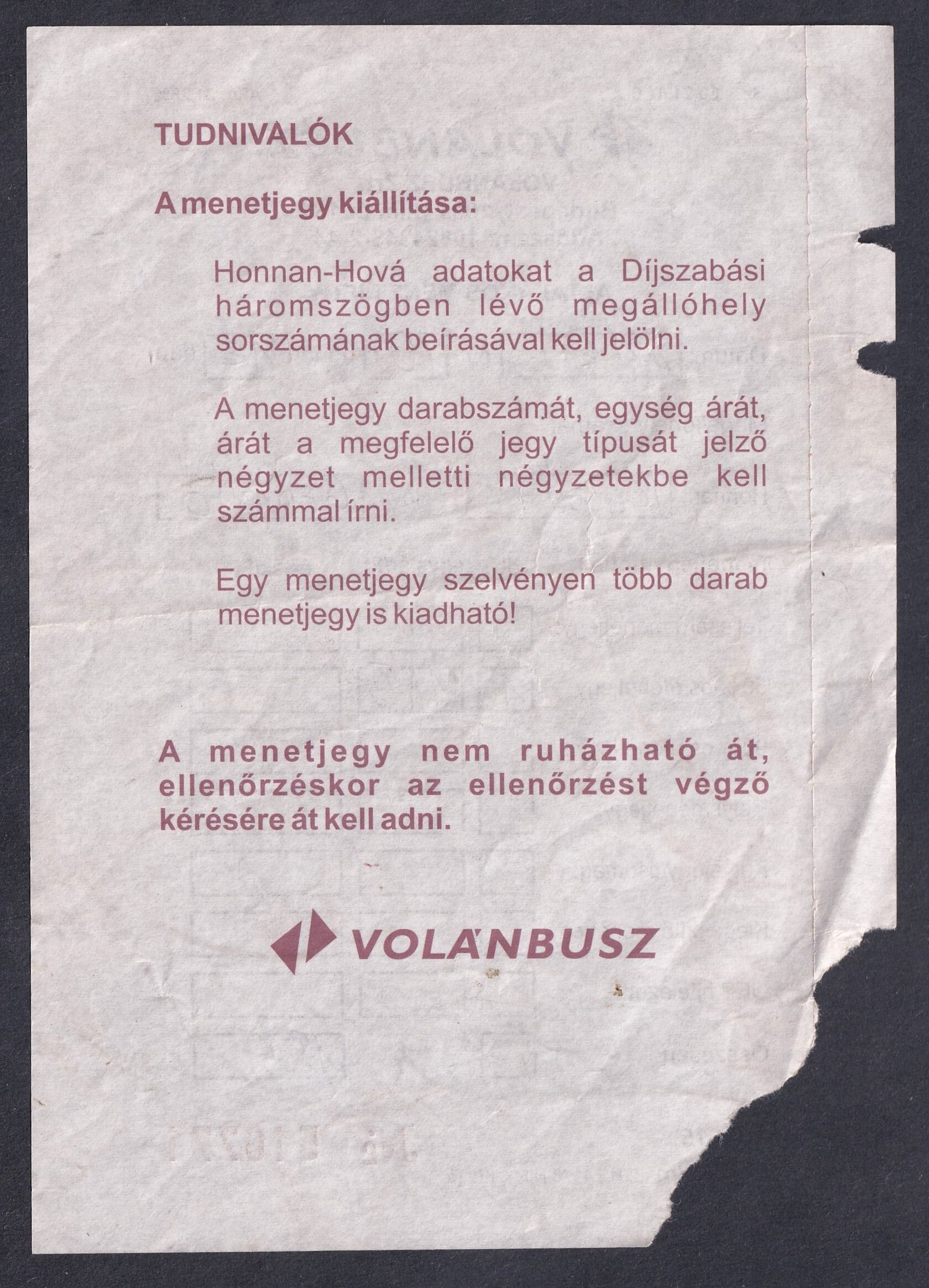 VOLÁNBUSZ, gépjárművezető által kiállított menetjegy (hibás jegyautomata miatt)