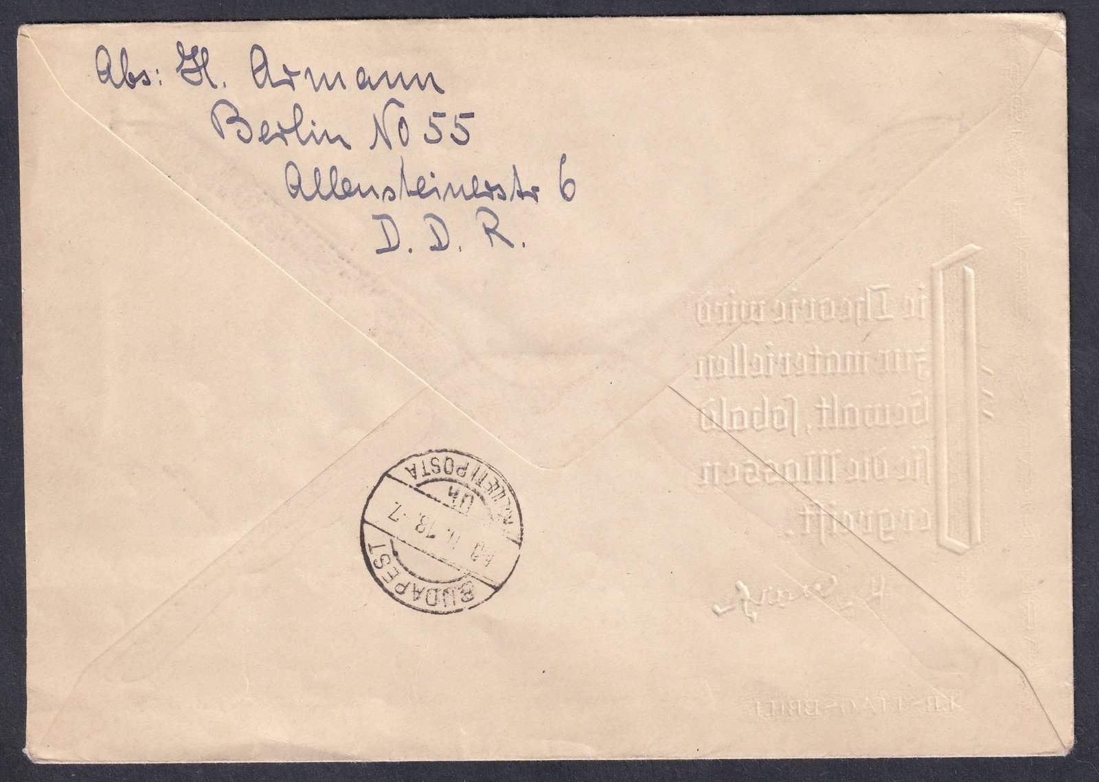 1953. NDK Karl Marx FDC, ajánlott levélként Magyarországra feladva, szép állapotban