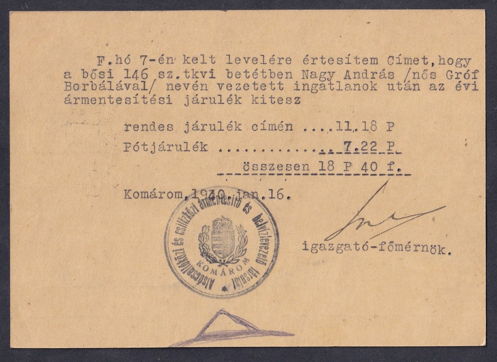 1946. június 3. (18. dsz.) Putnok, Budapestre feladott levél