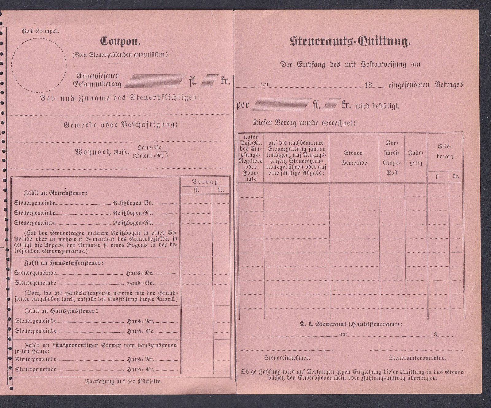 1918. Hivatalos ügyben feladott Postautalvány (portó mentes)