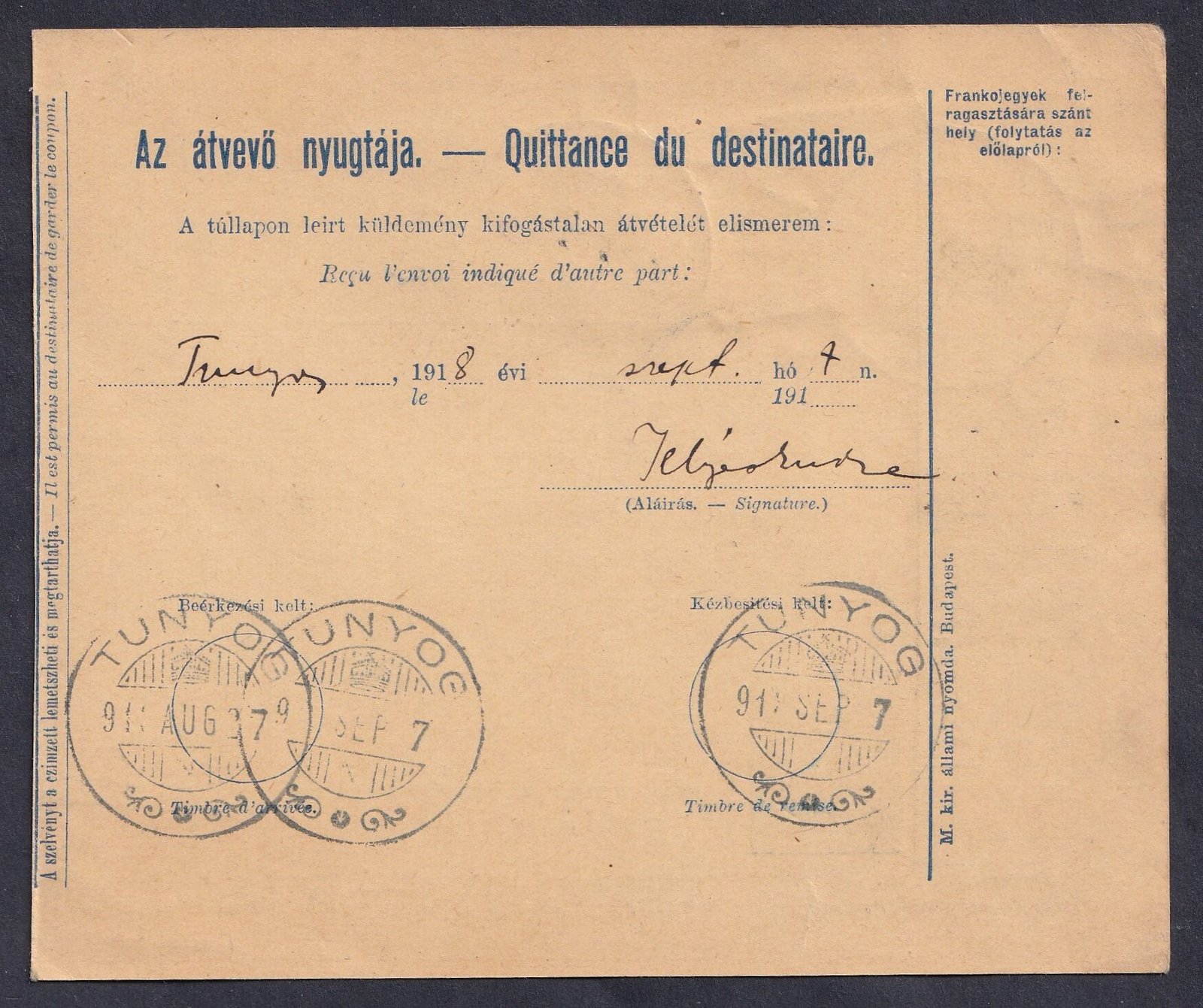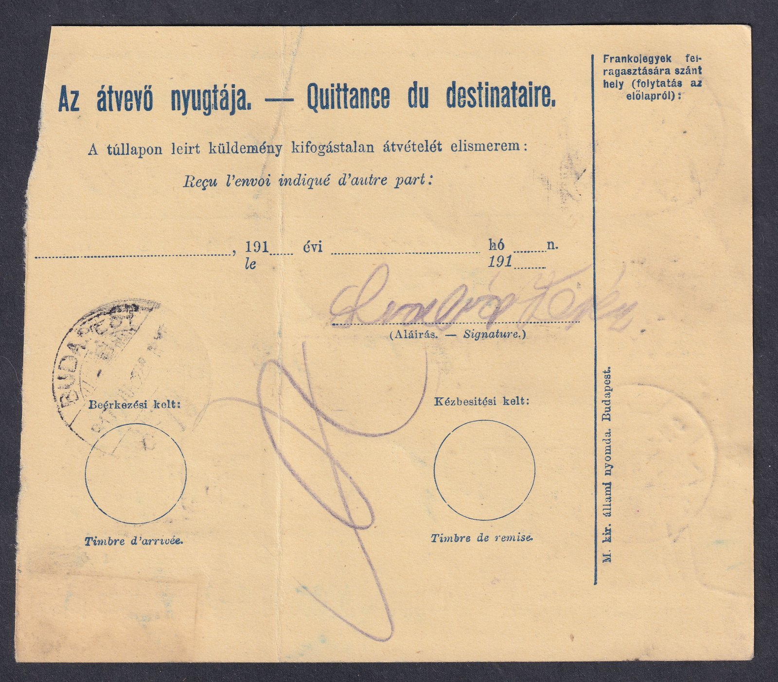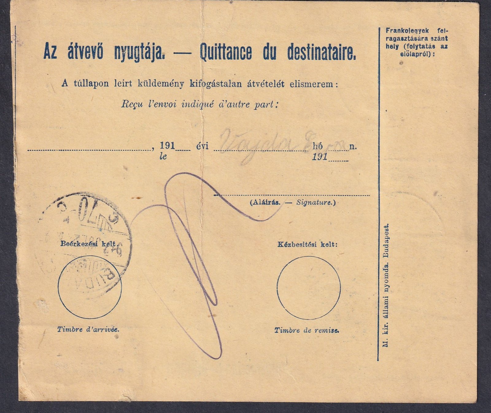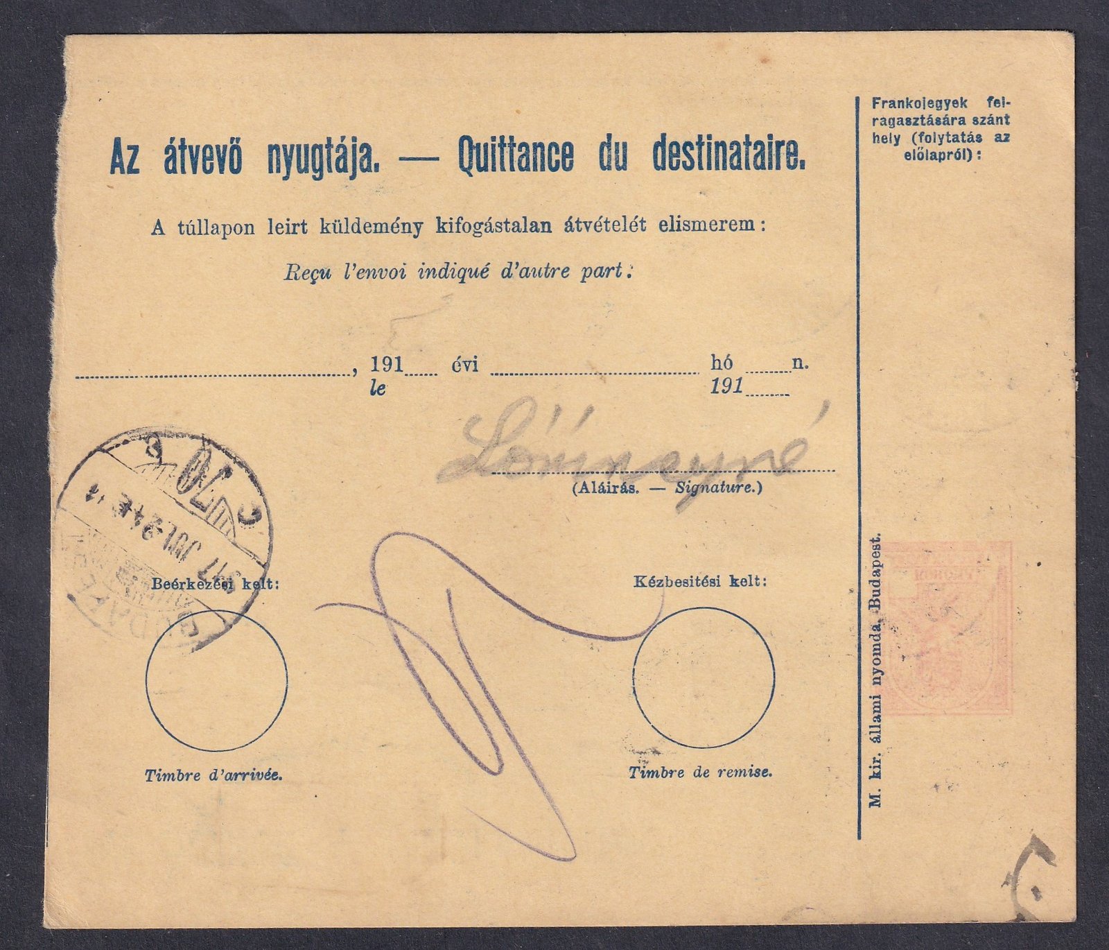 1909. 10 f A1 vízjel állással