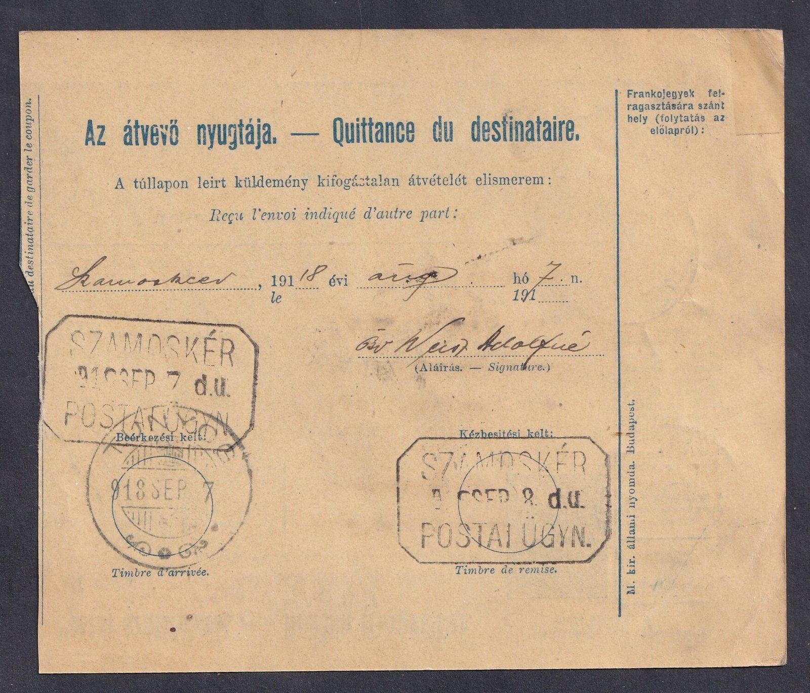 Triest érkezési bélyegzés