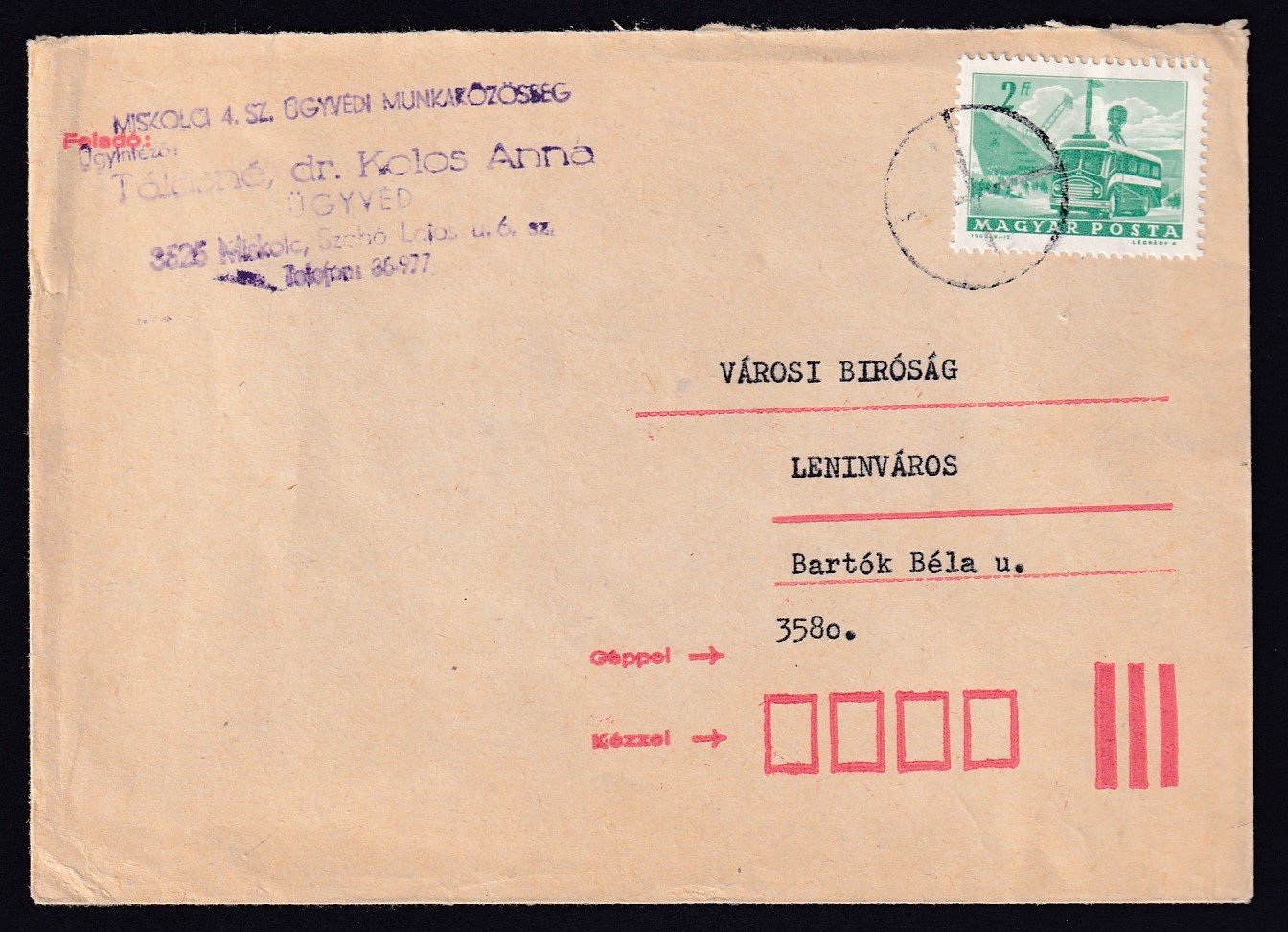 Miskolc, Leninvárosba feladott levél néma bélyegzéssel