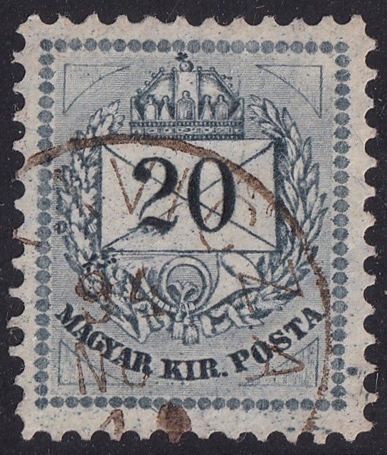 1881. 20 kr látványos metszetjavítás – a boríték alatt, jobb alsó háromszög!