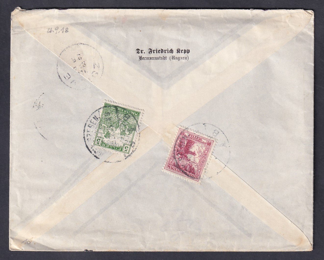 1918. Pozsony, Turócszentmárton-ra feladott expressz levél
