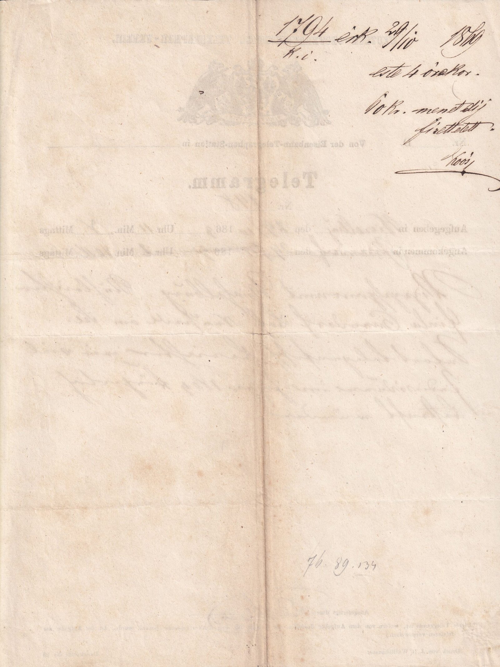 1869. Wieselburg-ról Pándorfaluba küldött Távírat – nagyon szép kiállítási darab!