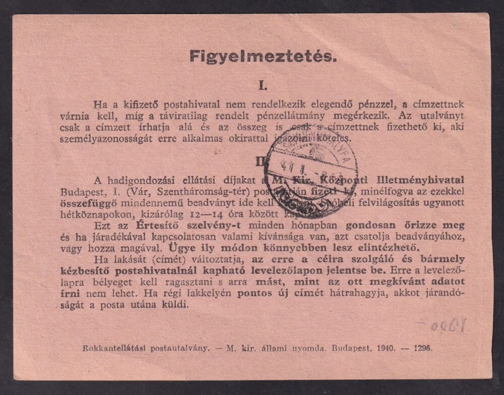 Lébénybe feladott képeslap, néma bélyegzéssel
