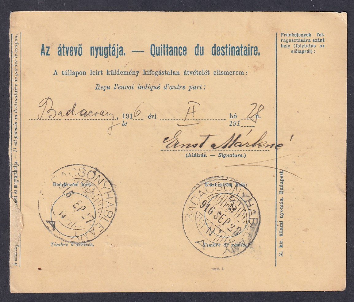 1916. Újvidék, Badacsonyba feladott szállítólevél