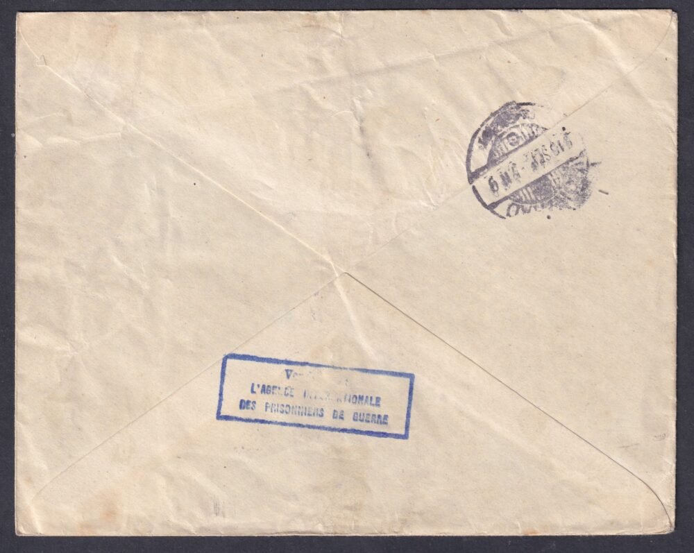 3.000 FtKosárba teszem Magyar POSTATÖRTÉNELEM-levelek, küldeményekHátoldalon kék téglalap alakú bélyegző : „L’AGENCE INTERNATIONALE DES PRISONNIERS DE GUERRE”