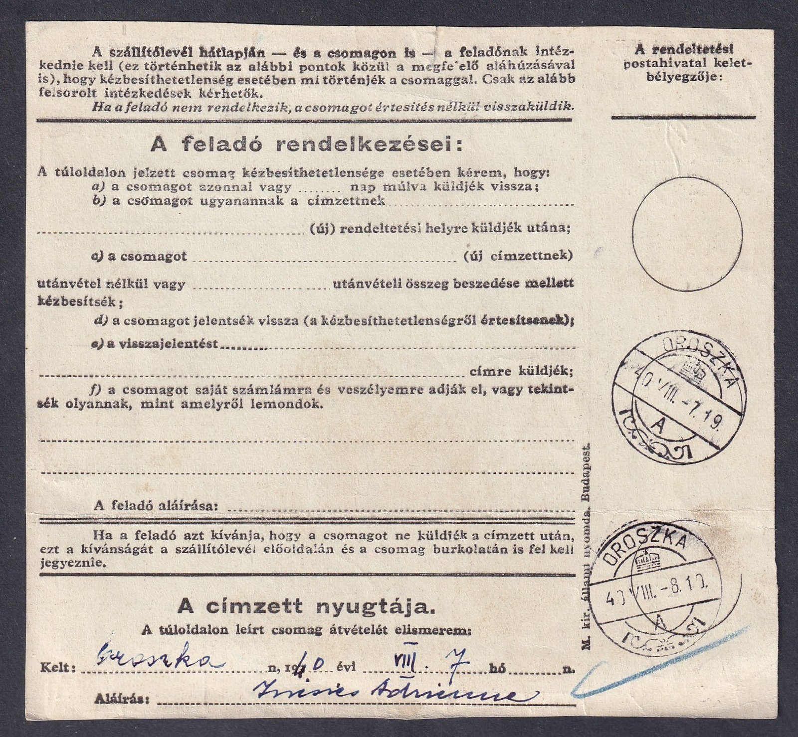 1940. érdekes szállítólevél 16,2 Pengó portóval