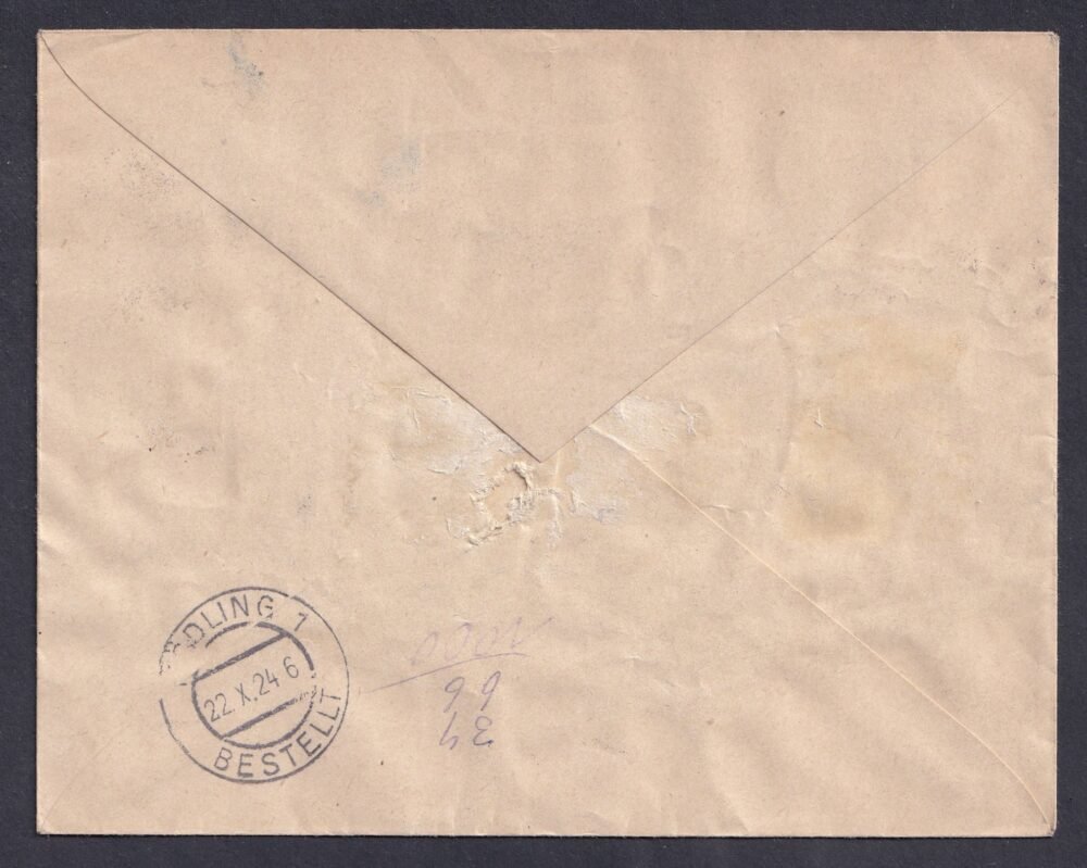 1922. Budapest, Bécsbe feladott légiposta levél – Budapest-Wien irányító bélyegzéssel