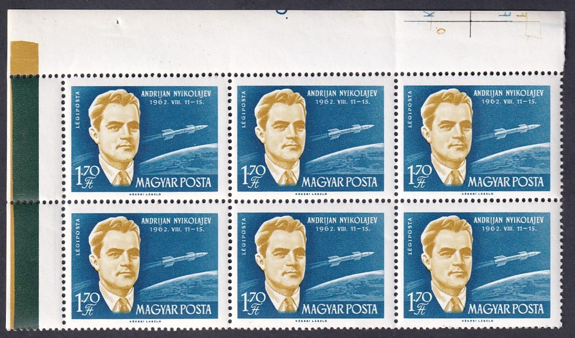 1962. A világűr meghódítói. 1.70 Ft “i” lemezhibával 6-os tömbben