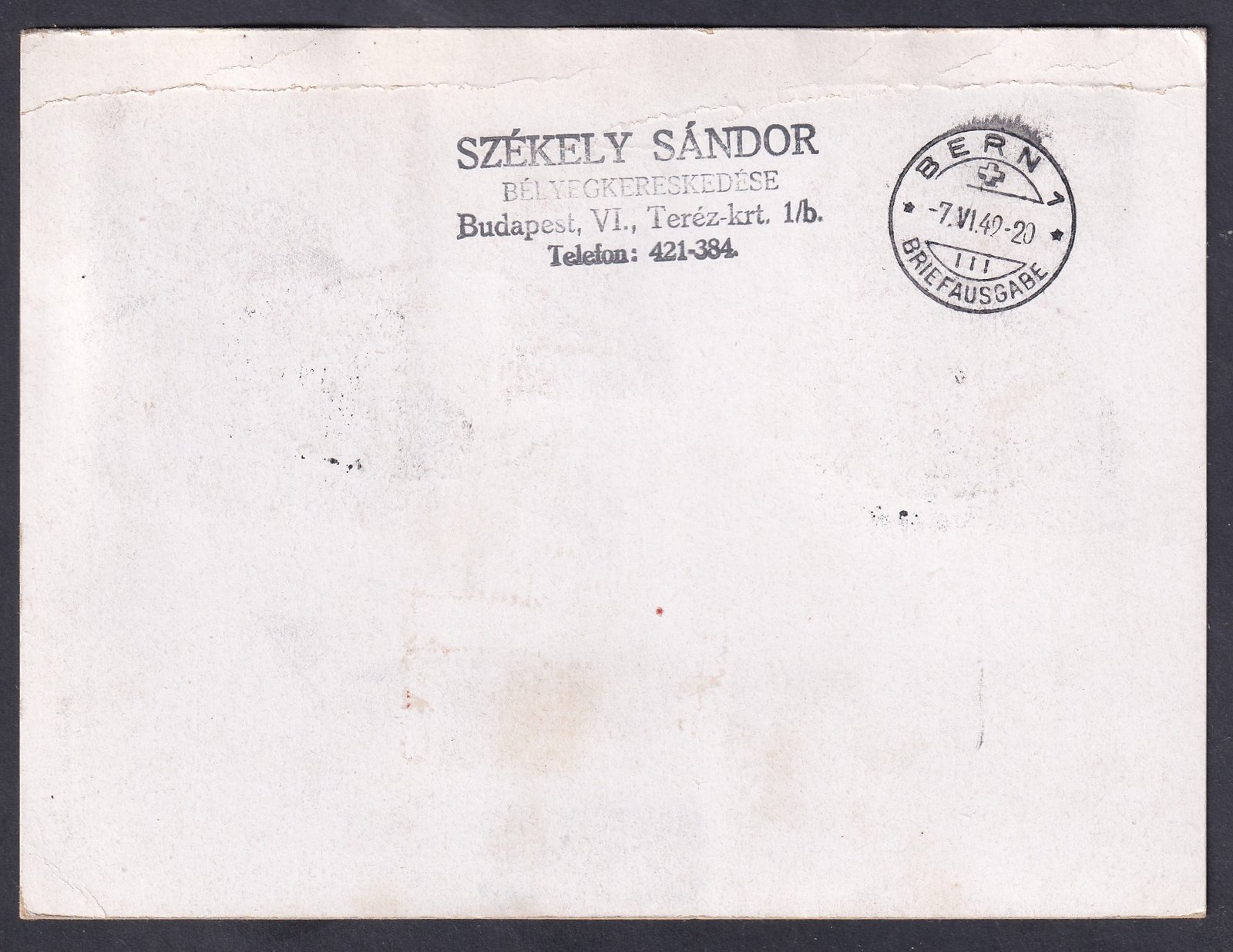 1949. Puskin blokk pár + bélyeg (Emléklap) – Svájcba feladott ajánlott légiposta nyomtatványként – Magyar-Szovjet légitársaság bélyegzéssel
