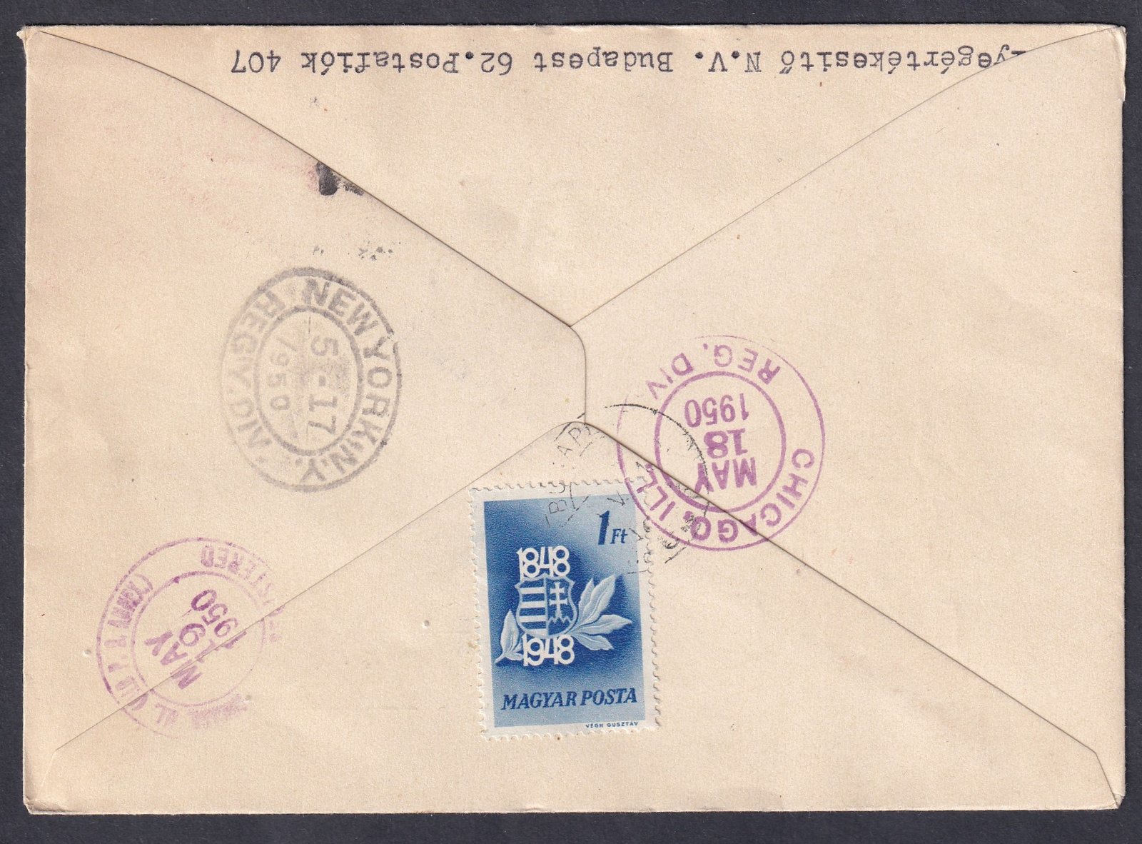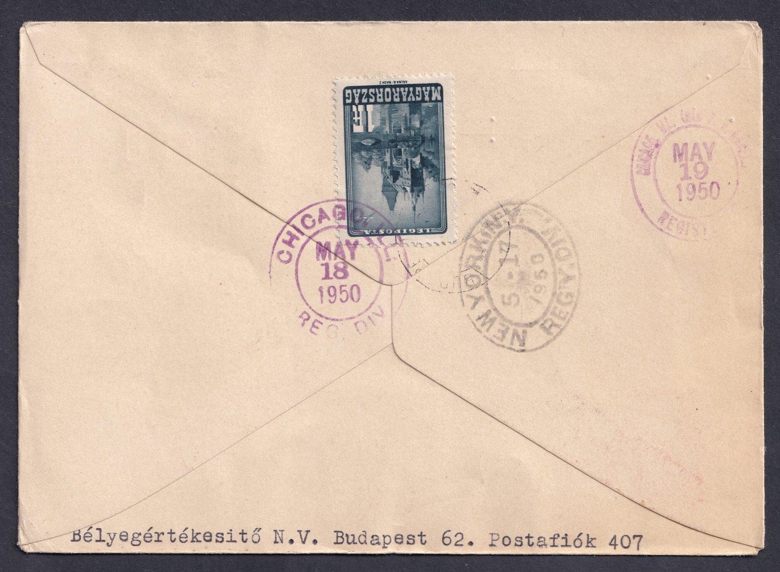 1955. Állami Nyomda FDC, Hollandiába feladott, vámkezelt ajánlott levél