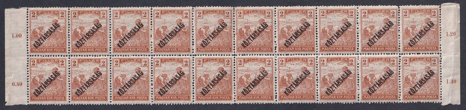 1946. Köztársasági emlék 15 eP teljes ív – mindkét ismert lemezhibával