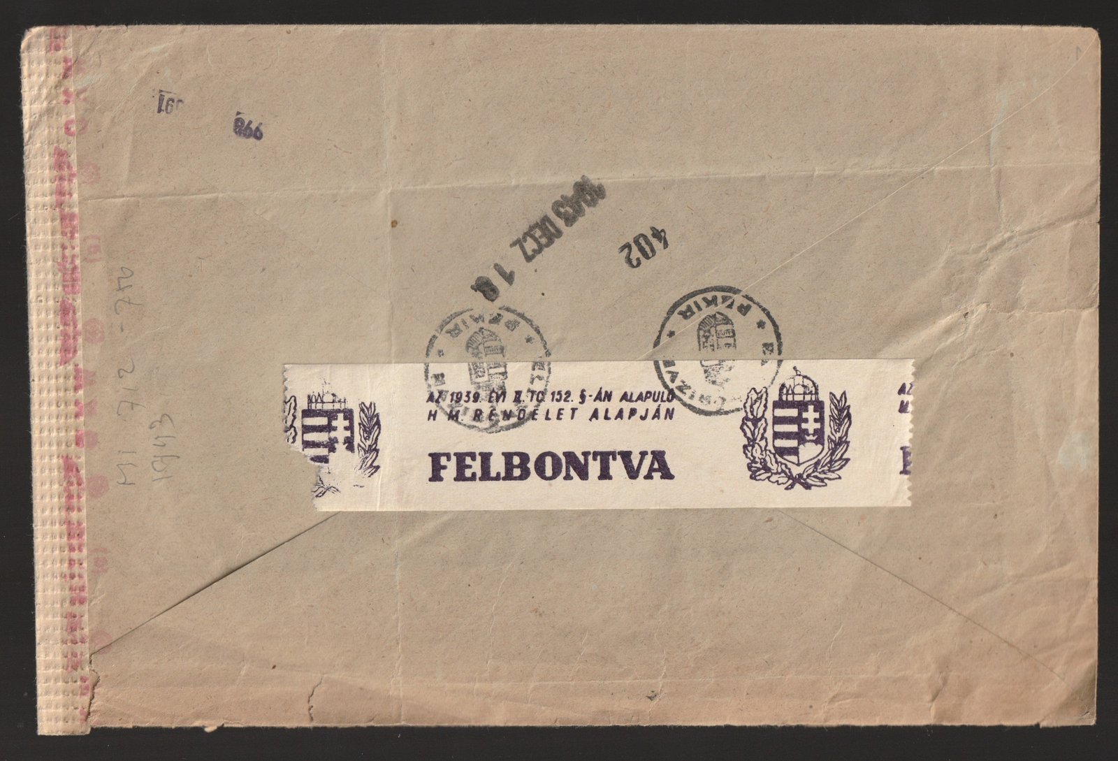 1943. Hollandiába feladott cenzúrázott nyomtatvány boríték, hivatalos ügyben – ritka küldemény típus!