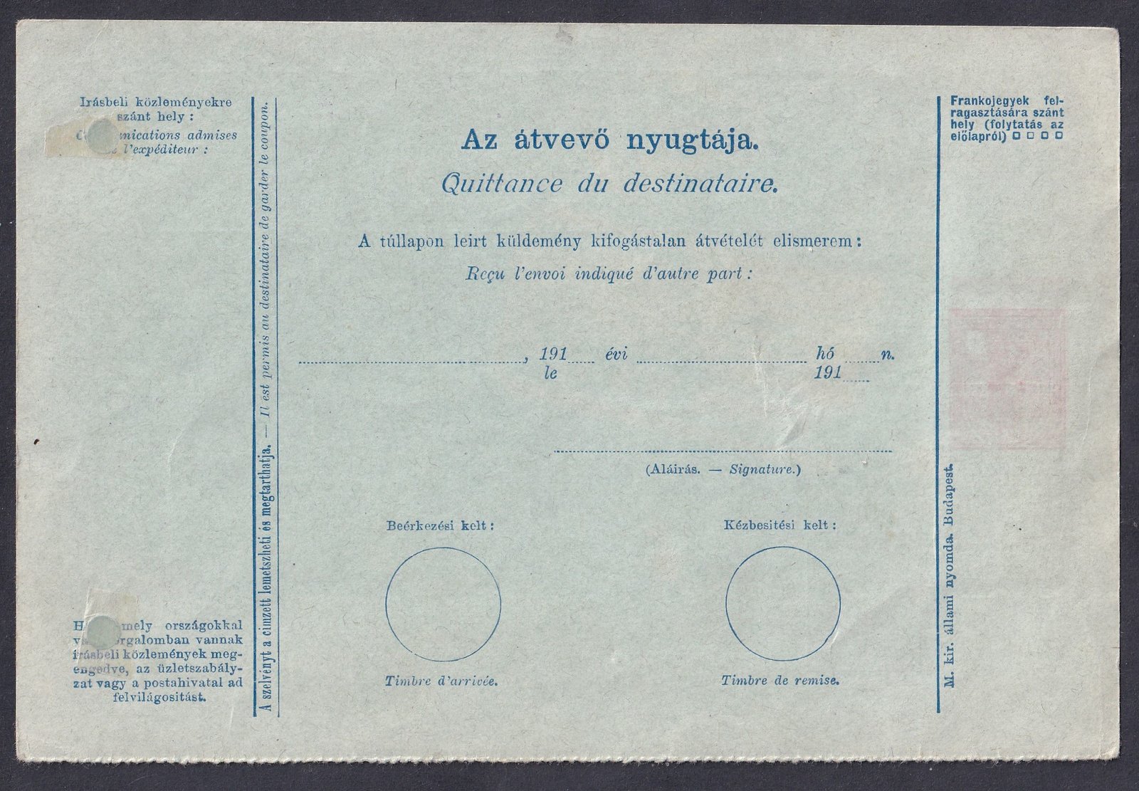 Franciaország, Siófokra feladott légiposta szállítólevél