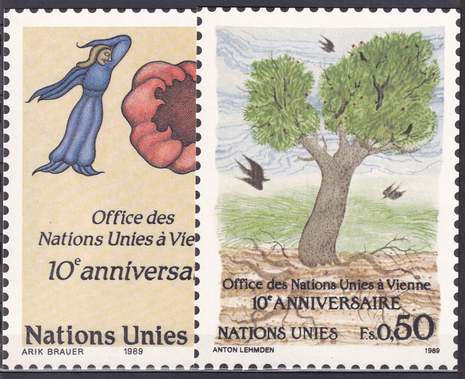 1988. ENSZ, 6db 10 éves Bécsi iroda alkalmi képeslap
