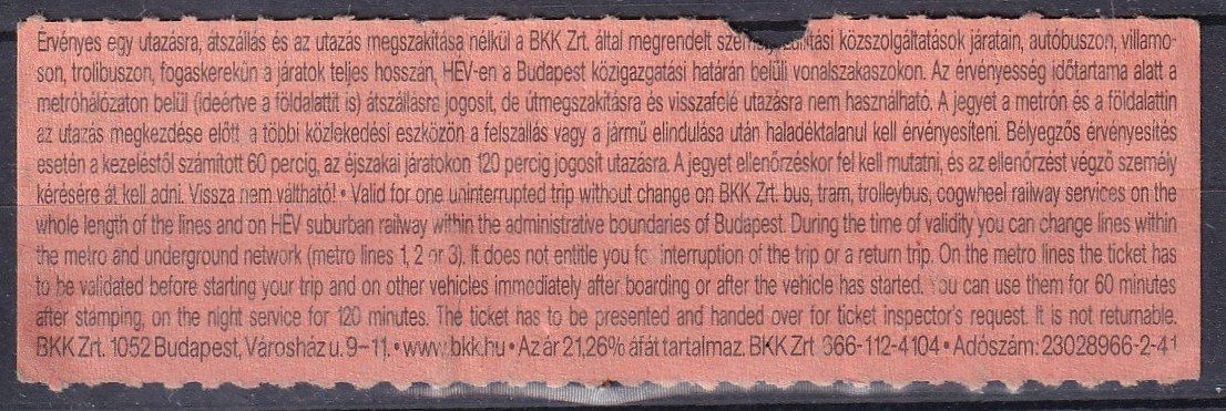 BKV, autóbusz vonaljegy