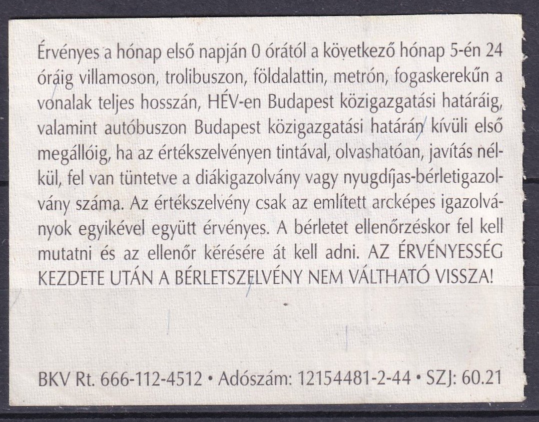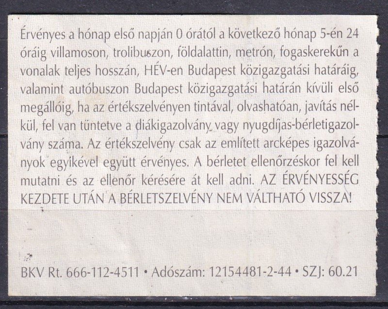 2003. BKV. 30 napos bérlet