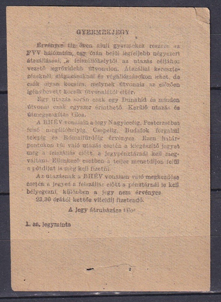 FVV-Gyermekjegy (használatlan)
