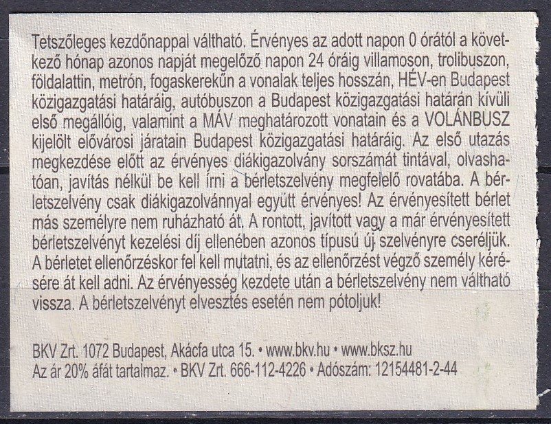 2009. Havi Budapest-BérletTanulóknak (3700 Ft)
