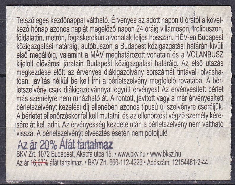 2004. BKV – Tanuló-Nyugdíjashavibérlet/November