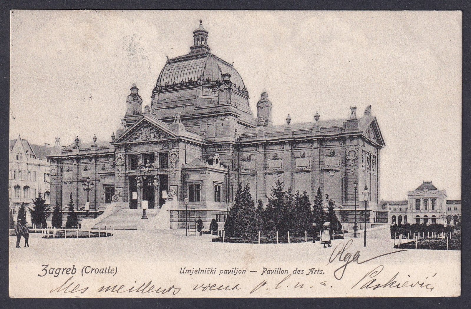 1916. Zágráb, Marseille (Franciaország)-ba feladott képelap – Zágrábi Művészeti Pavilon