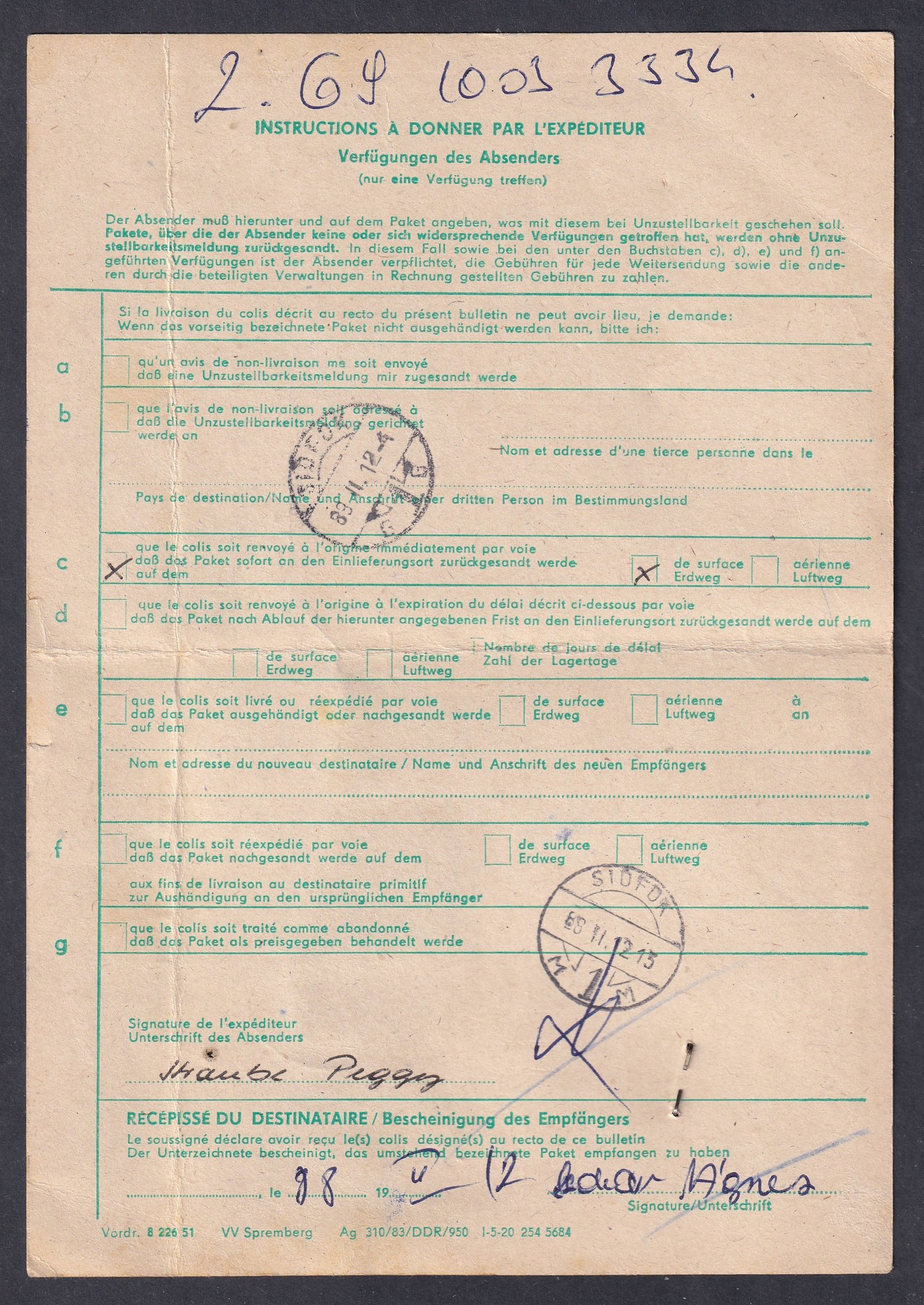 1988. NDK, Magyarországra feladott svámkezelt szállítólevél