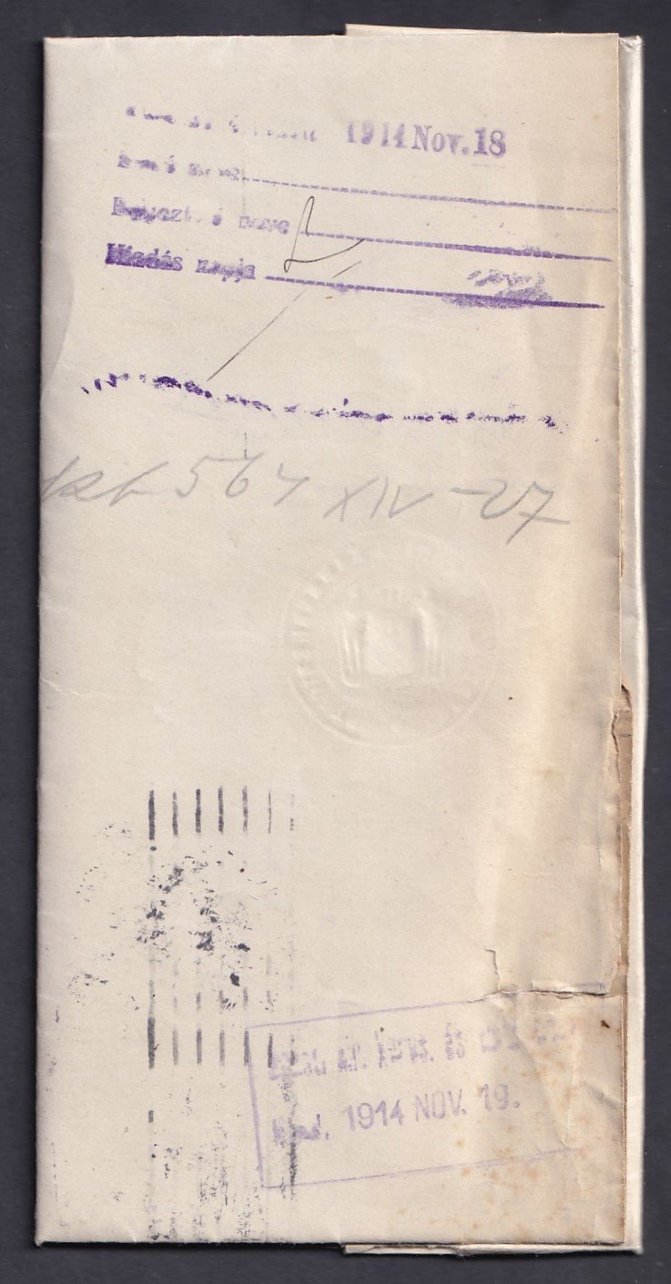 1914. Berlin, Budapestre feladott, cenzúrázott hivatalos levél – a Budapesti Királyi Kereskedelmi és Váltótörvényszék cégbíróságának teljes tartalommal, érdekes történelmi forrás
