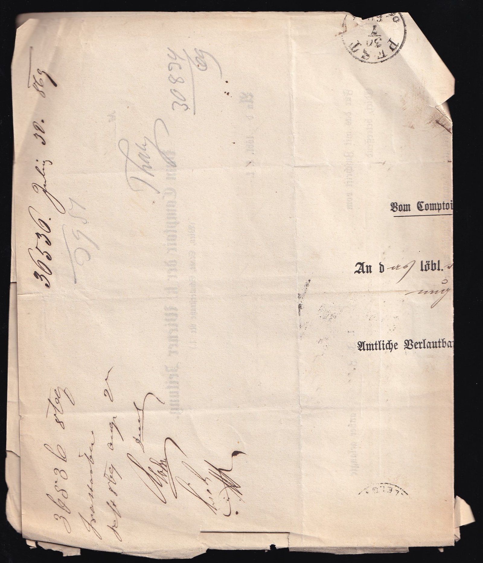 1869. Bécs (kék színű bélyegzéssel) Pestre feladott ex offo levél, a levélben törvénykezési illetékkel