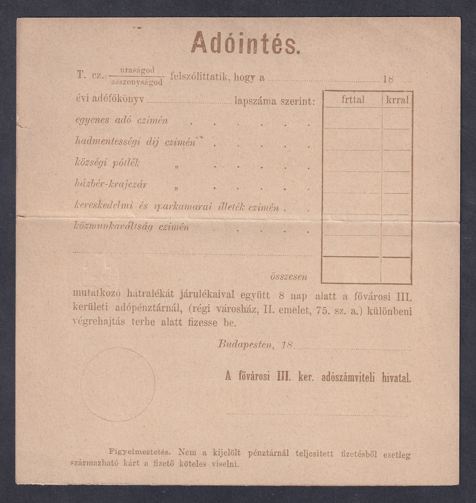 1884. 2kr Adóintés, használatlan díjjjegyes levelezőlap