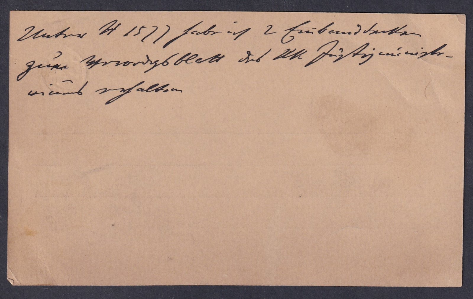 1874. 2 kr -os használatlan levelezőlap, hátoldalon feljegyzéssel
