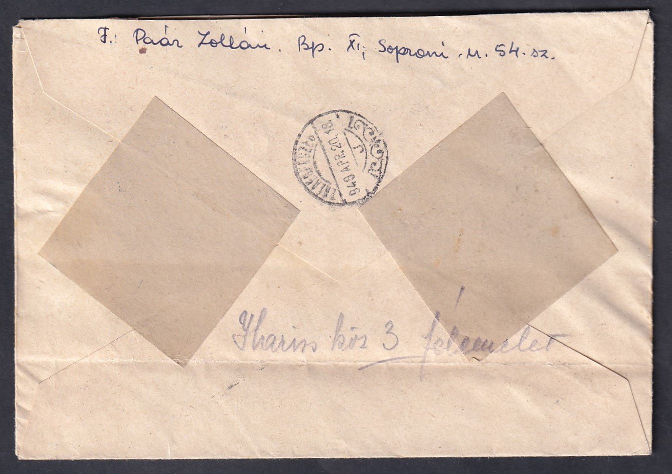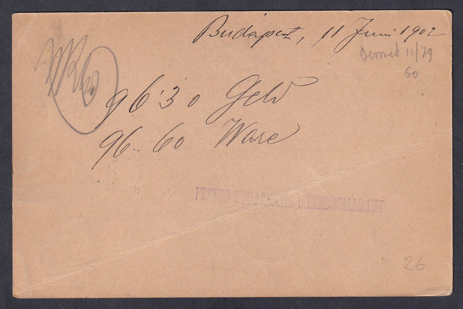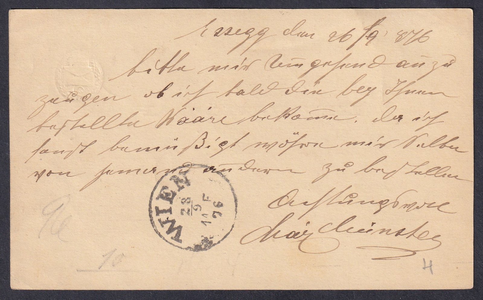 A küldeményt a „Feldpostamt 290” német tábori postahivatal bélyegzőjével (1917. XI. 12.) továbbították Bécsbe. Érdekes, vegyes használat: k.u.k. alakulat német tábori postán keresztül feladott levelezése. Szép, jól olvasható bélyegzésekkel.