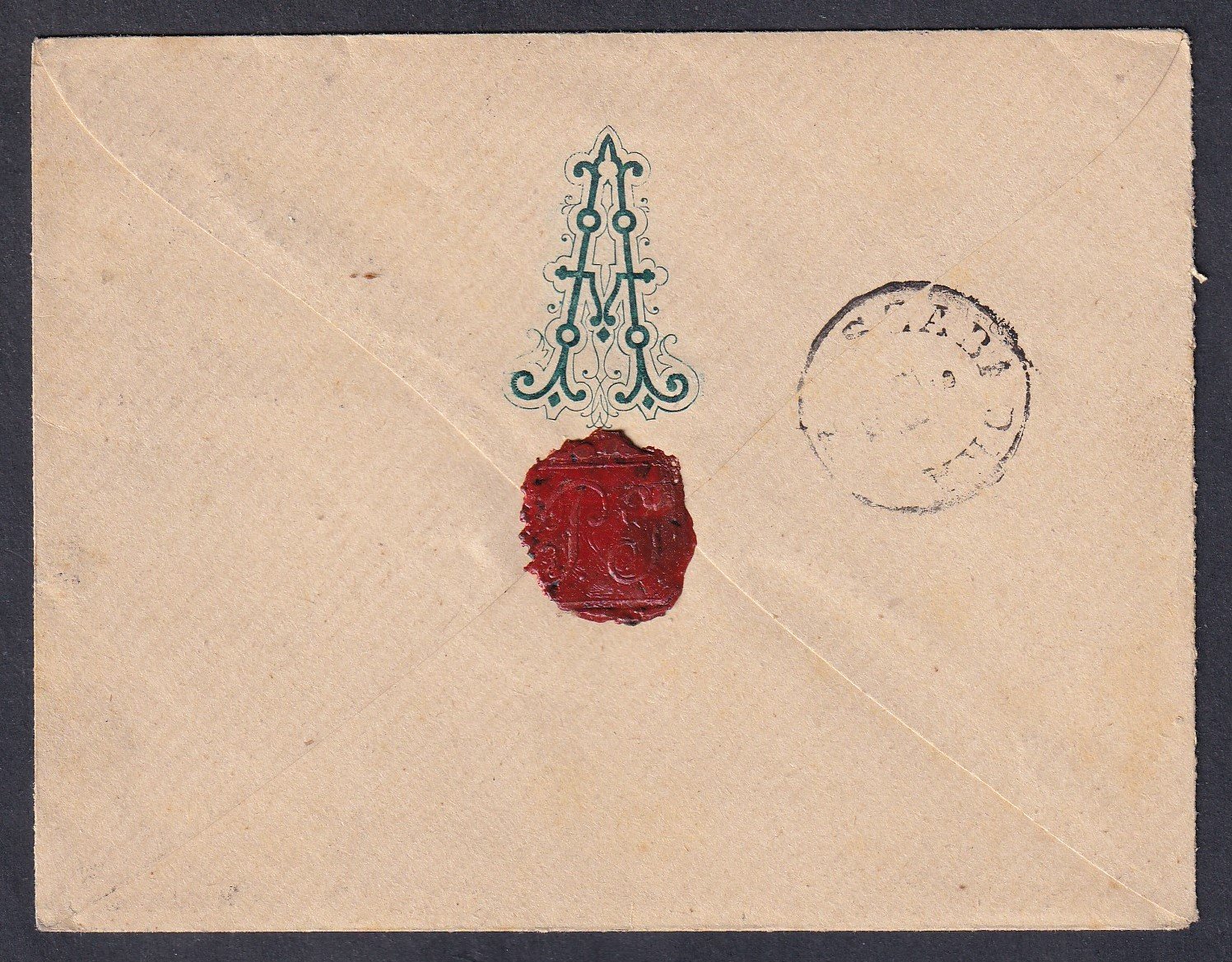 1885. Ada – Szabadkára feladott levél, hátoldalon viaszpecséttel, a borítékon családi címerrel