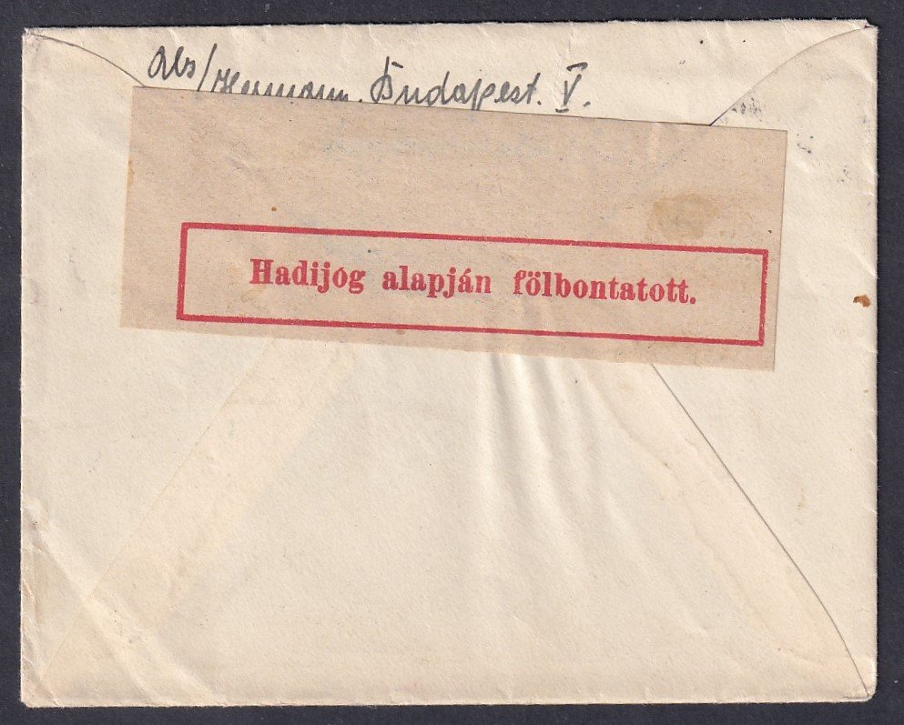 1915. A Budapesti Központi Járásbíróság által feladott ajánlott levél, nem kézbesített küldemény, eredeti, bontatlan levéltári csomagban megőrizve.