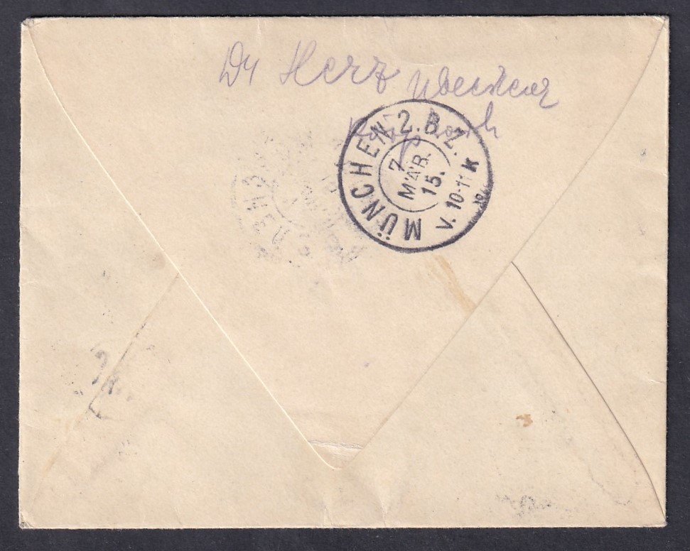 1915. Nagybecskerek, Münchenbe feladott cenzúrázott-ajánlott levél
