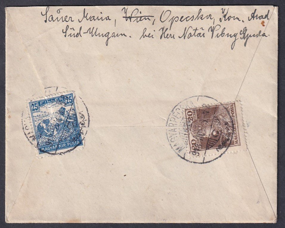 1918. november 9-én Magyarpécskáról Bécsbe feladott levél. Erdélyt 1918. december 1-jén csatolták el Magyarországtól; a küldemény a magyar közigazgatás alatt feladott utolsó levelek közé tartozik egy kis erdélyi településről