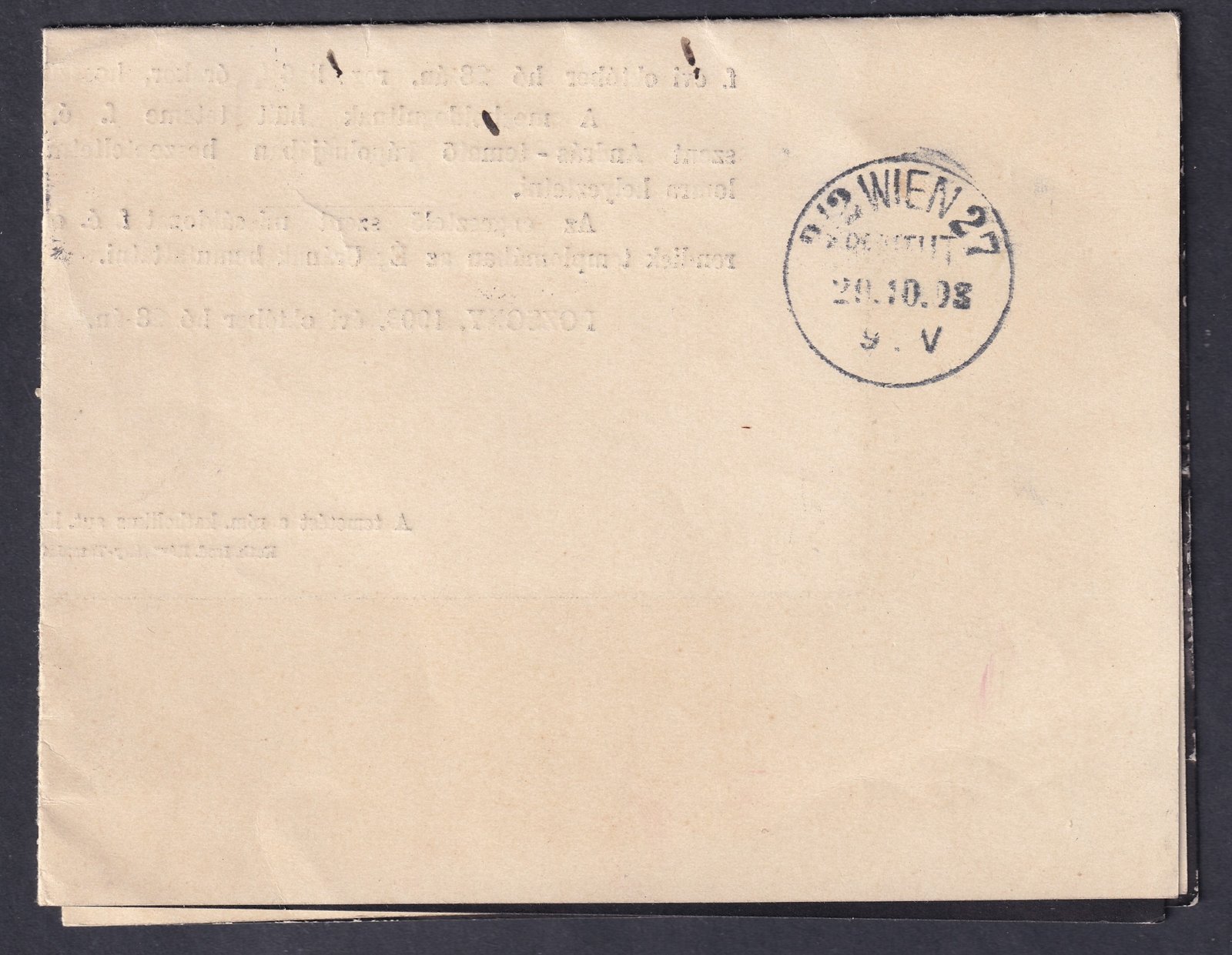 1902. Pozsony, Bécsbe feladott nyomtatvány