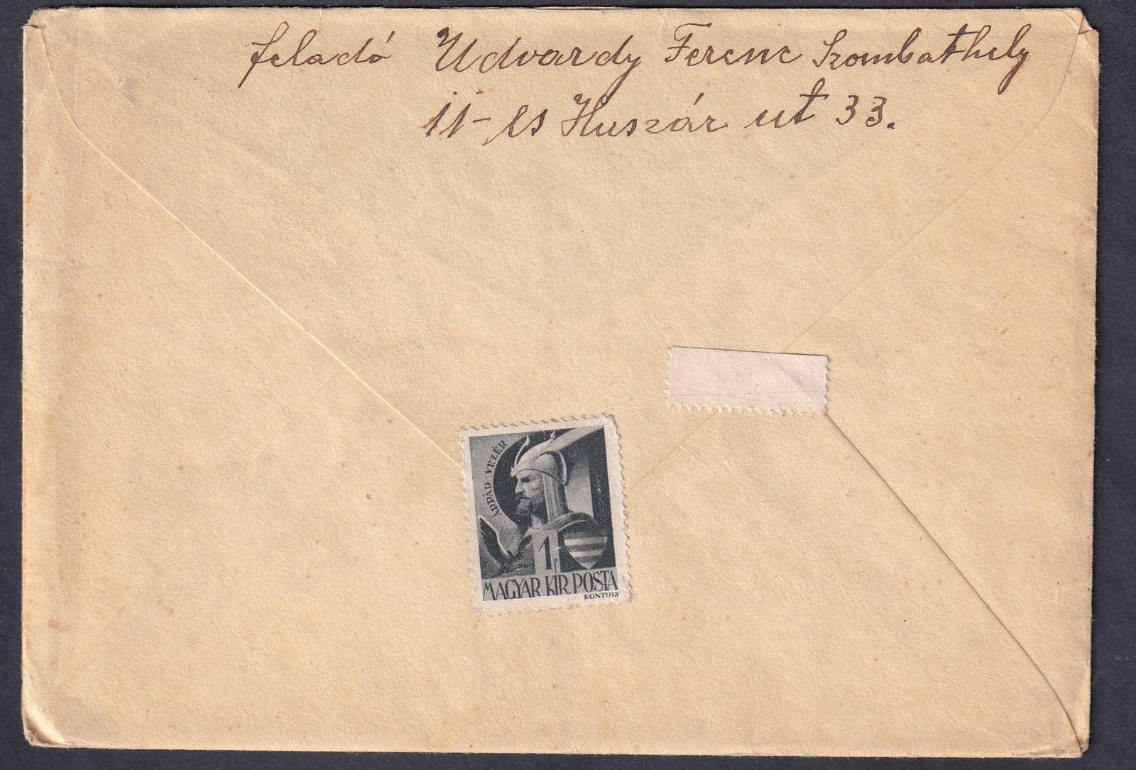 1941. Szécsényi István sor elsőnapi alkalmi bélyegzéssel, Szombathelyre feladott ajánlott levél, FDC!