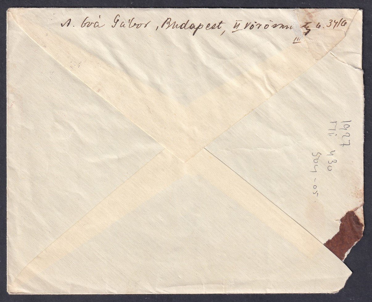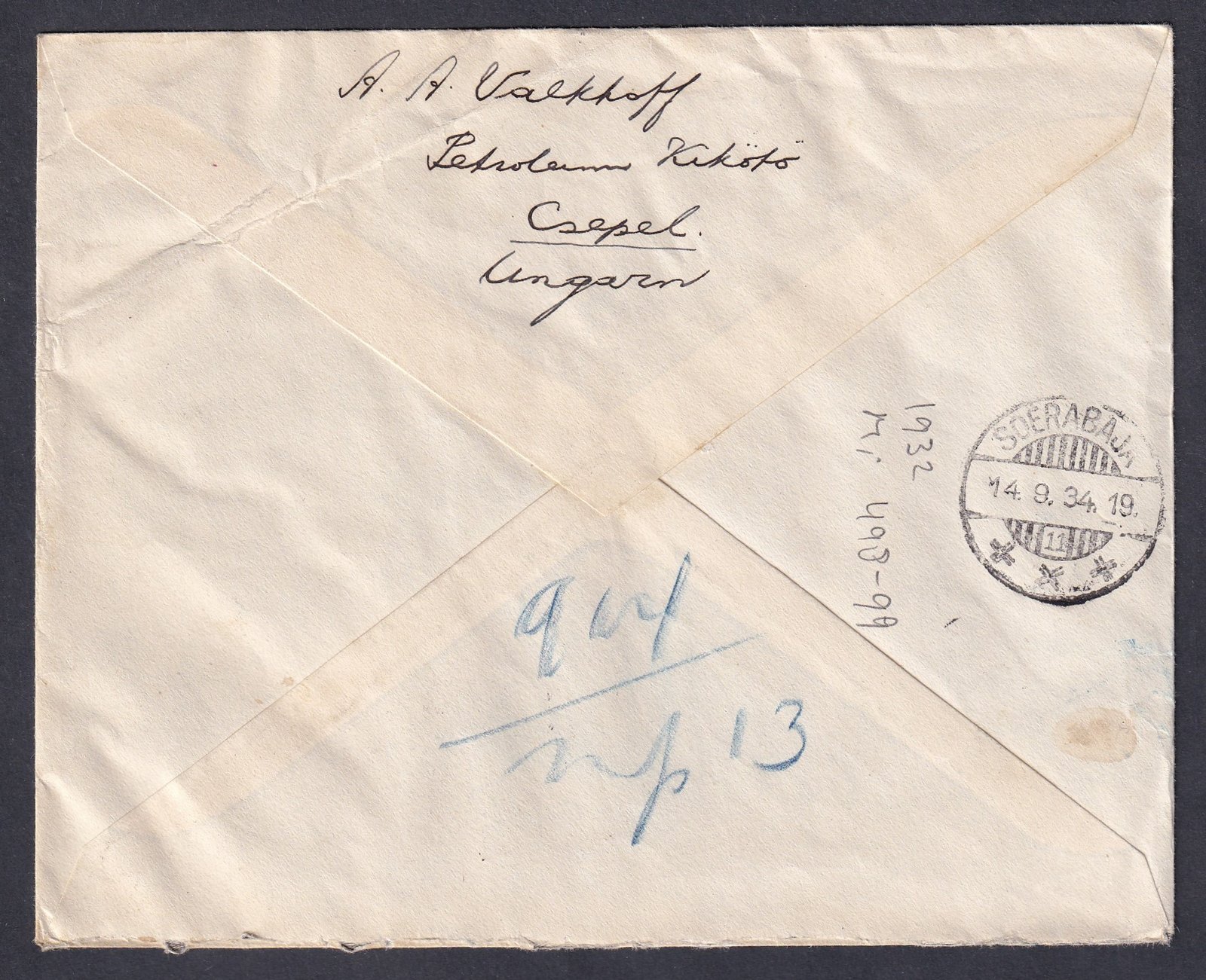 1934. Budapest, Soerabaja/Nederl.-Indien (Surabaya) – Indonézia-Jáva szigetére feladott ajánlott levél