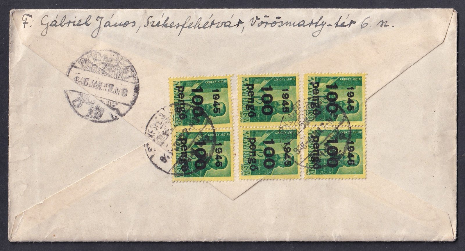 1946. jan. 17. (6. díjsz.) Székesfehérvár, Budapestre feladott levél, teljes tartalommal
