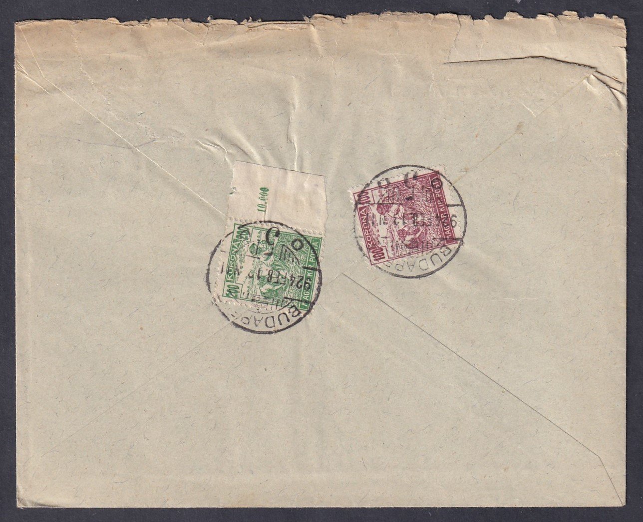 1926. aug. 1. Budapest, helyi ajánlott levél – 20f tarifa türelmi időben felhasznált 2.500 Koronával bérmentesítve – kiállítási célból szétvágva
