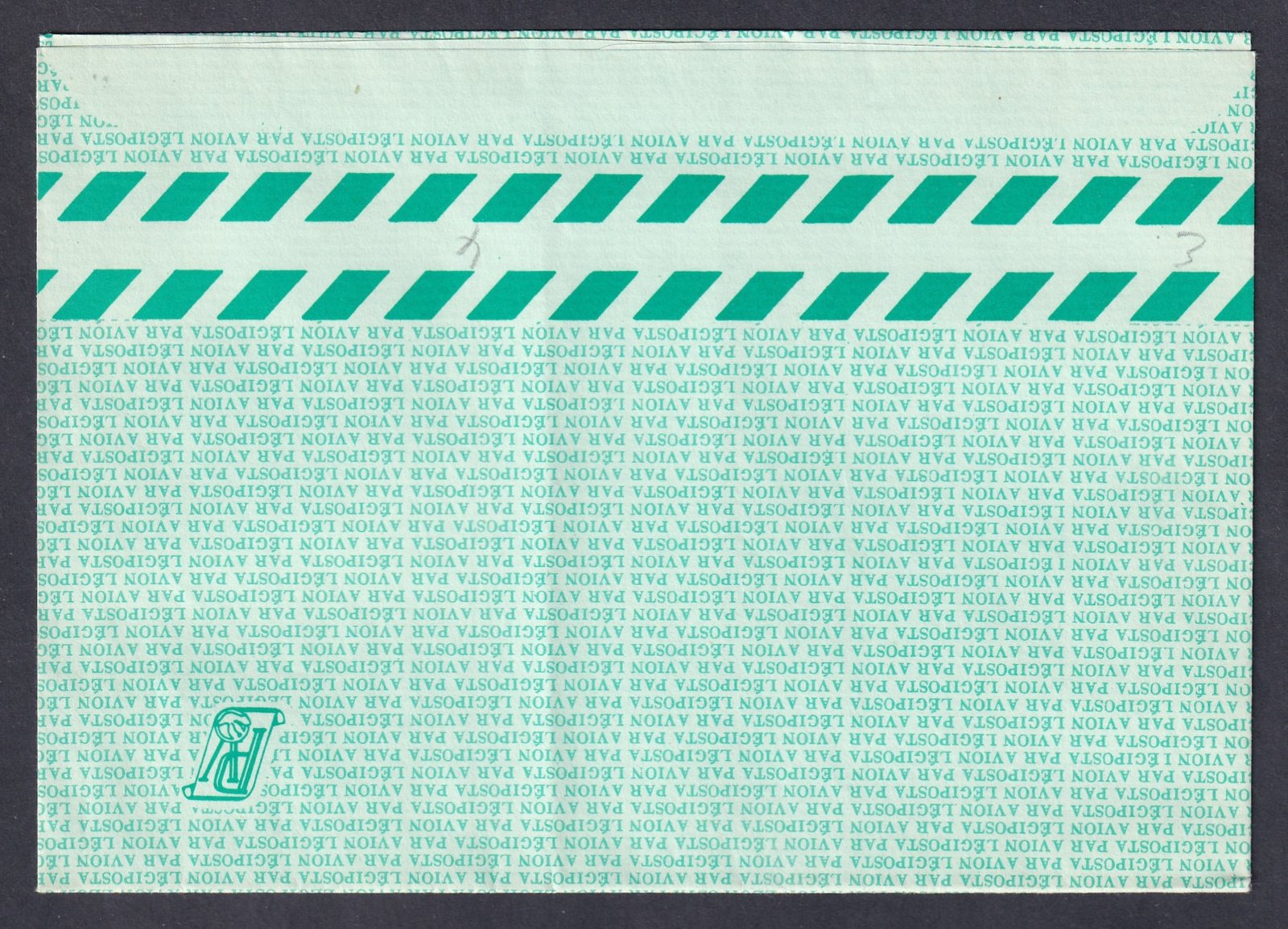1976. Interphil76 – használatlan légiposta díjjegyes boríték (jobbra dölő csíkokkal)